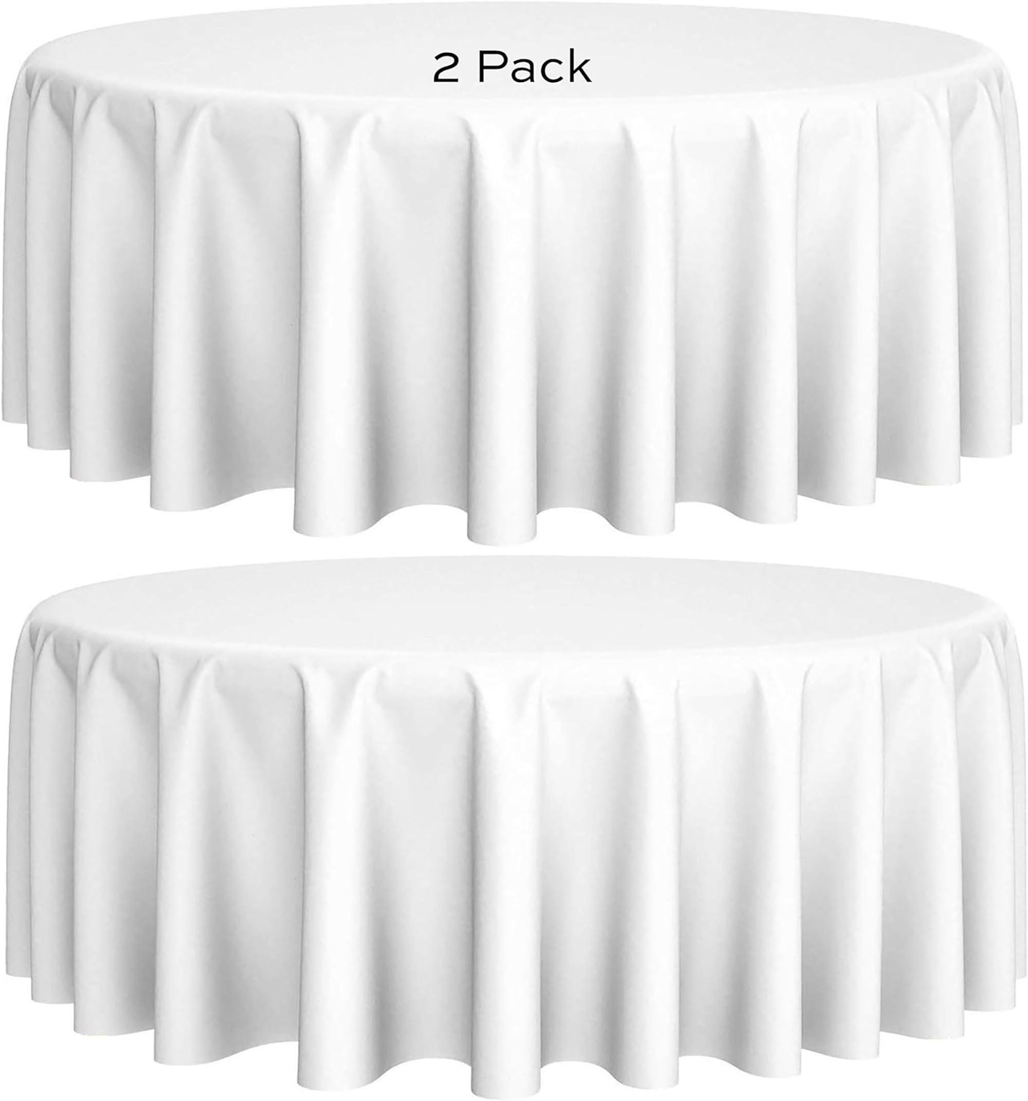 2 Pack 120 inch Round Premium Tablecloths for Wedding Banquet Restaurant 200 GSM Washable Fabric Table Cloth White