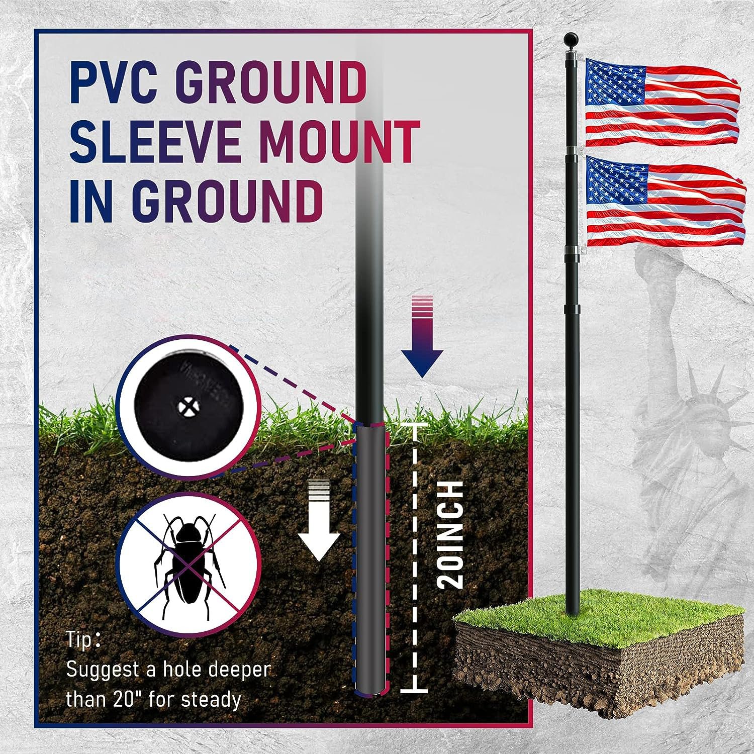 4.Flag-Worthy Quality: Designed to complement your patriotism, this flag pole pairs perfectly with 100% polyester flags, ensuring they wave elegantly in the breeze and resist fading, even under direct sunlight.