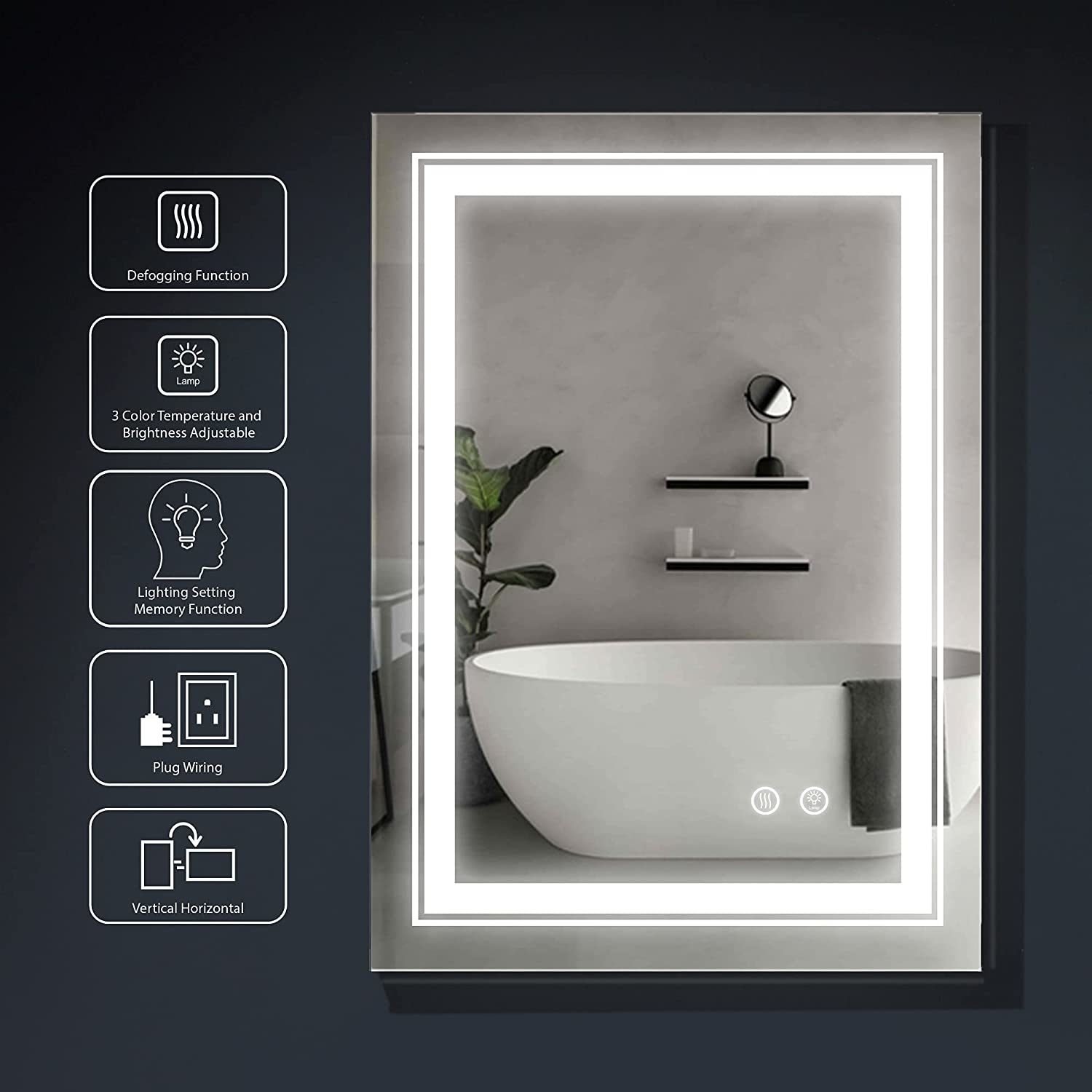 LED Mirror with Touch Buttons control; Anti-Fog LED bathroom Vanity Mirror