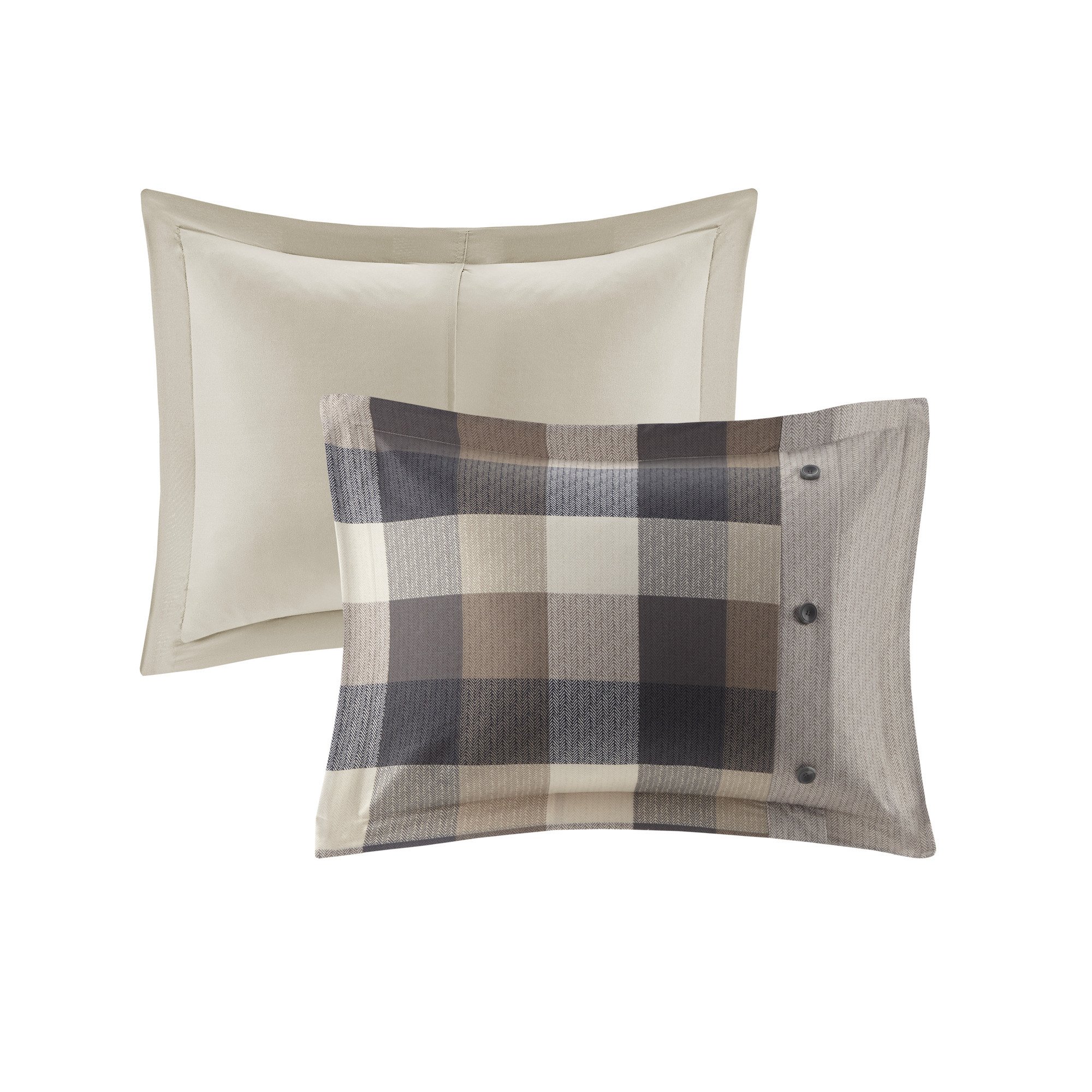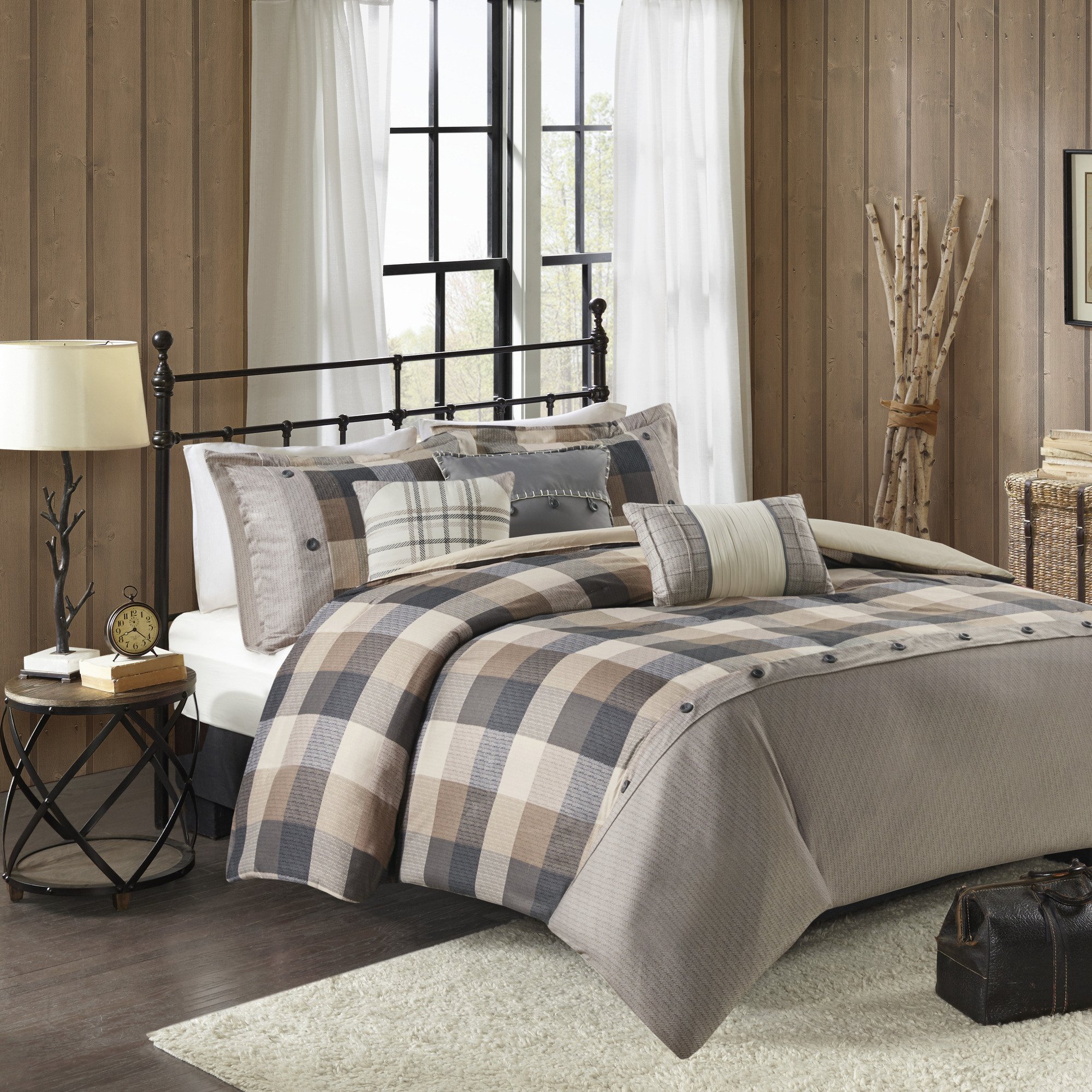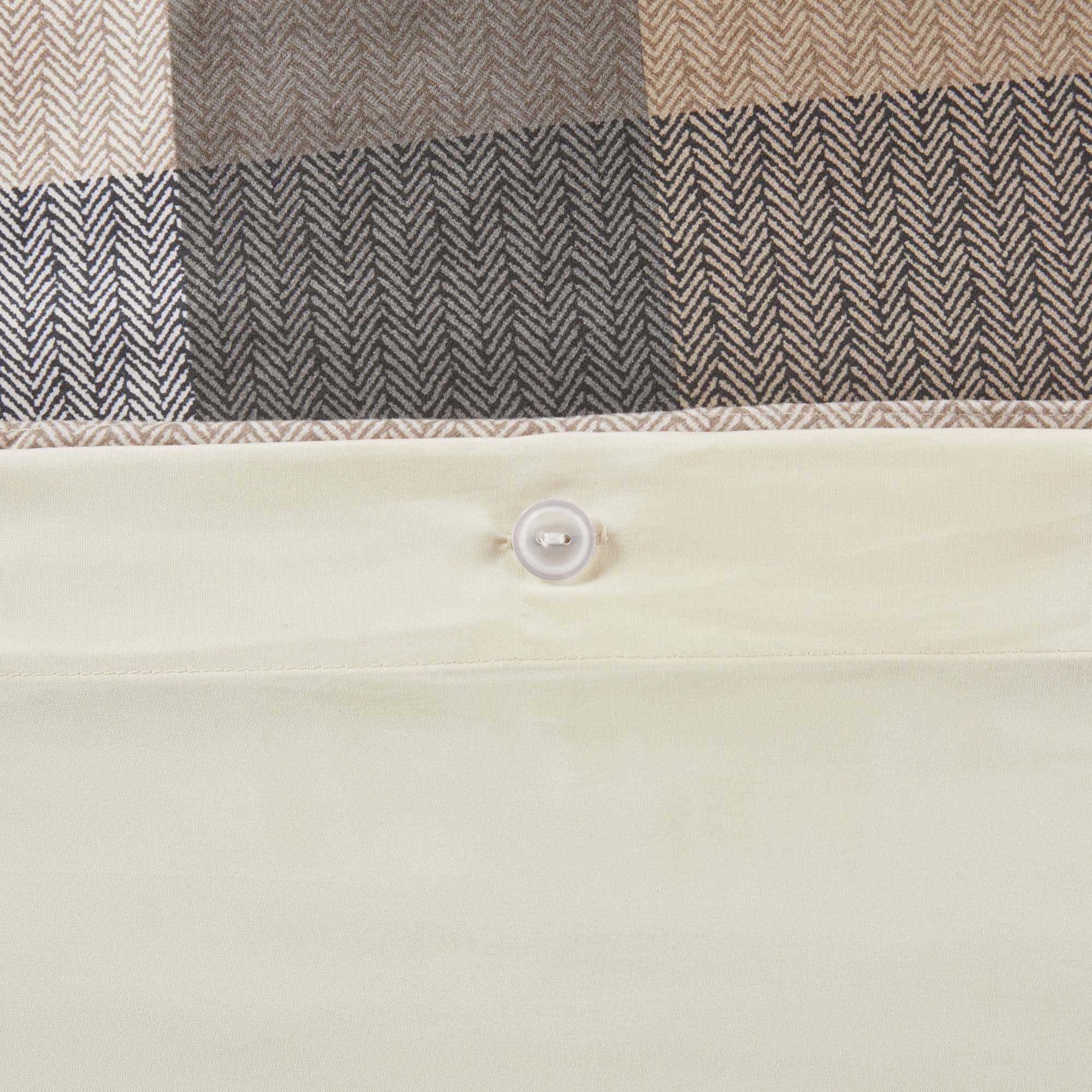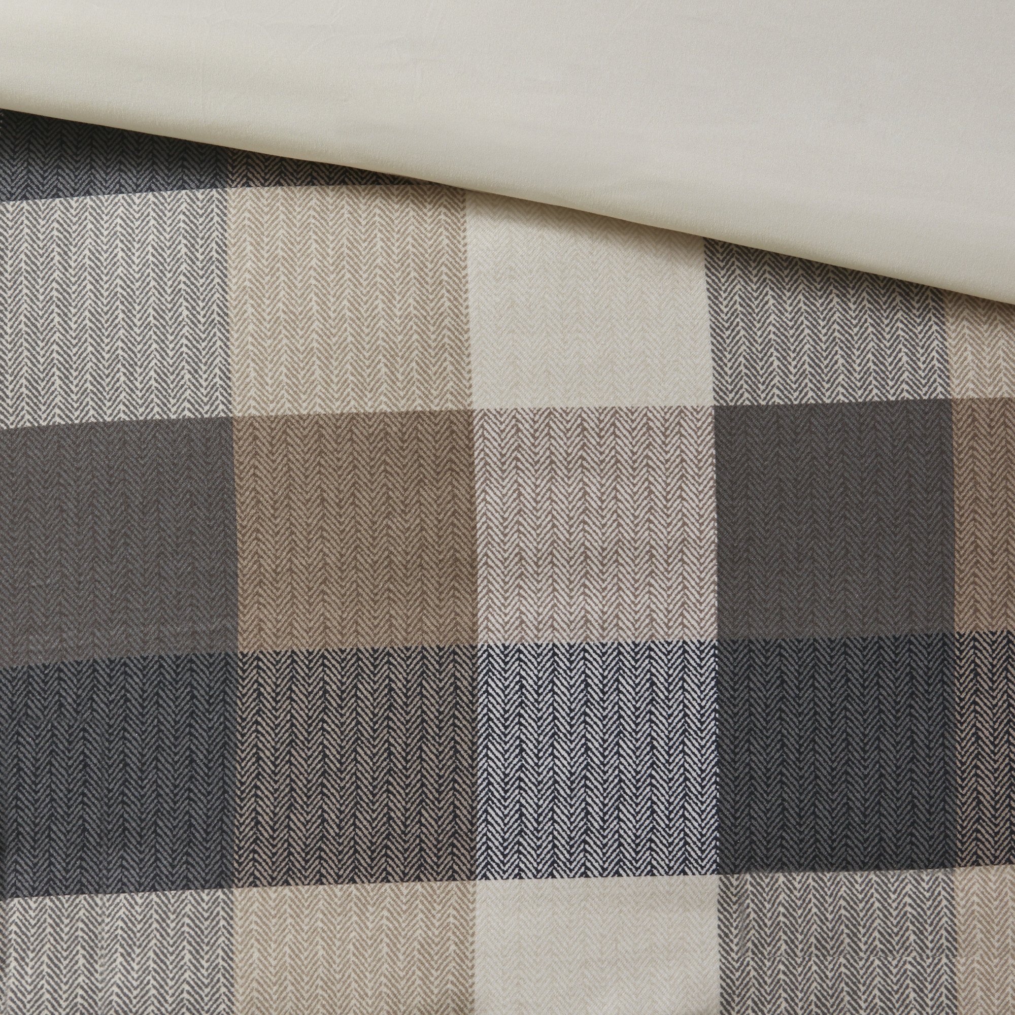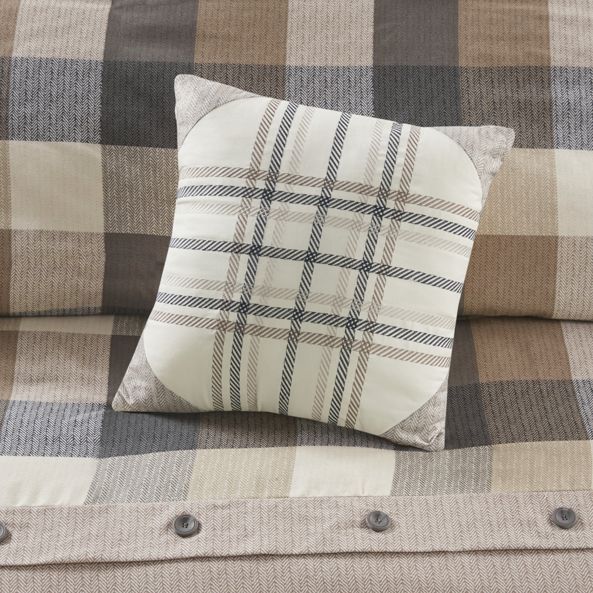 For an irresistibly warm and comfortable look, Ridge 6 Piece Herringbone Duvet Cover Set is the perfect update to your bed. This duvet cover sports a buffalo plaid pattern printed on herringbone fabric, for a cabin-inspired look. The bold design gives way to a printed herringbone border at the foot of the bed, adding a charming touch. Coordinating shams mimic the style of the comforter, enhancing the warm and cozy lodge aesthetic. Three decorative pillows with hand-stitched embroidered details bring texture and dimension to the top of the bed. A button closure secures a comforter insert within the duvet cover and inside ties in the corners prevent it from shifting (insert is NOT included). Items in the set may come in a rolled or compressed packaging, which will need to be fluffed up or steam ironed before use to remove wrinkles.
