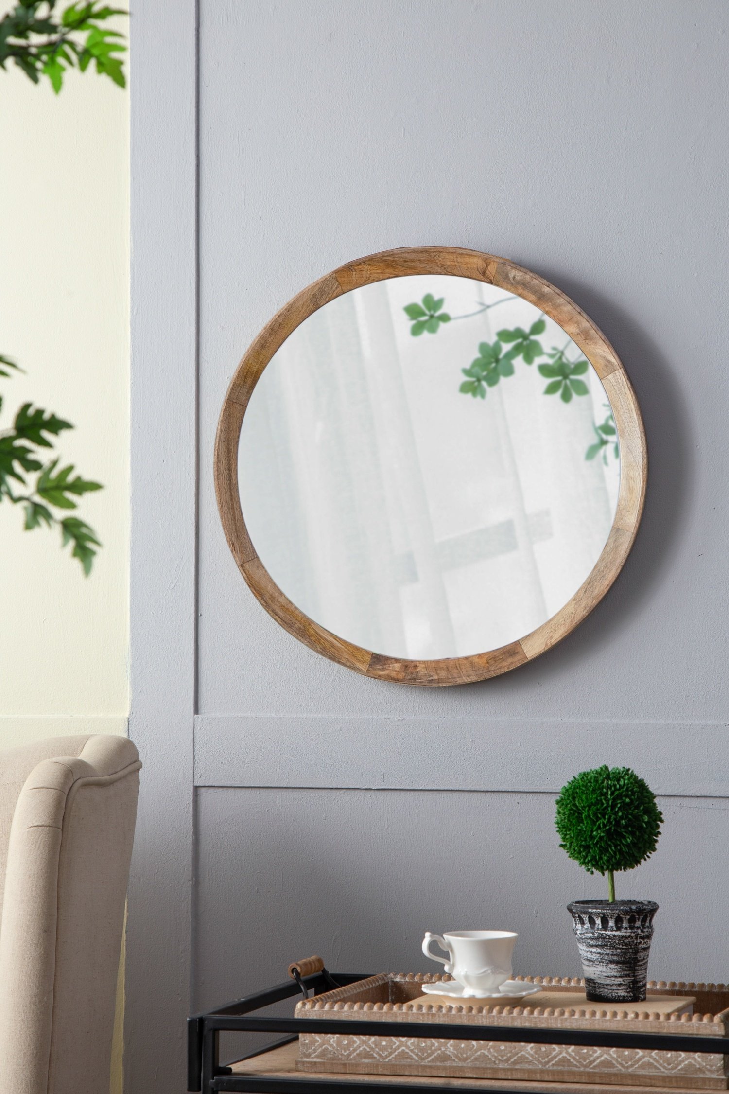 Home > D20x1.5"Transitional Decor Style Mango Wood Wall Mirror Wall Decor with Frame of Solid Mango Wood for Bathroom,Entryway Console Lean Against Wall