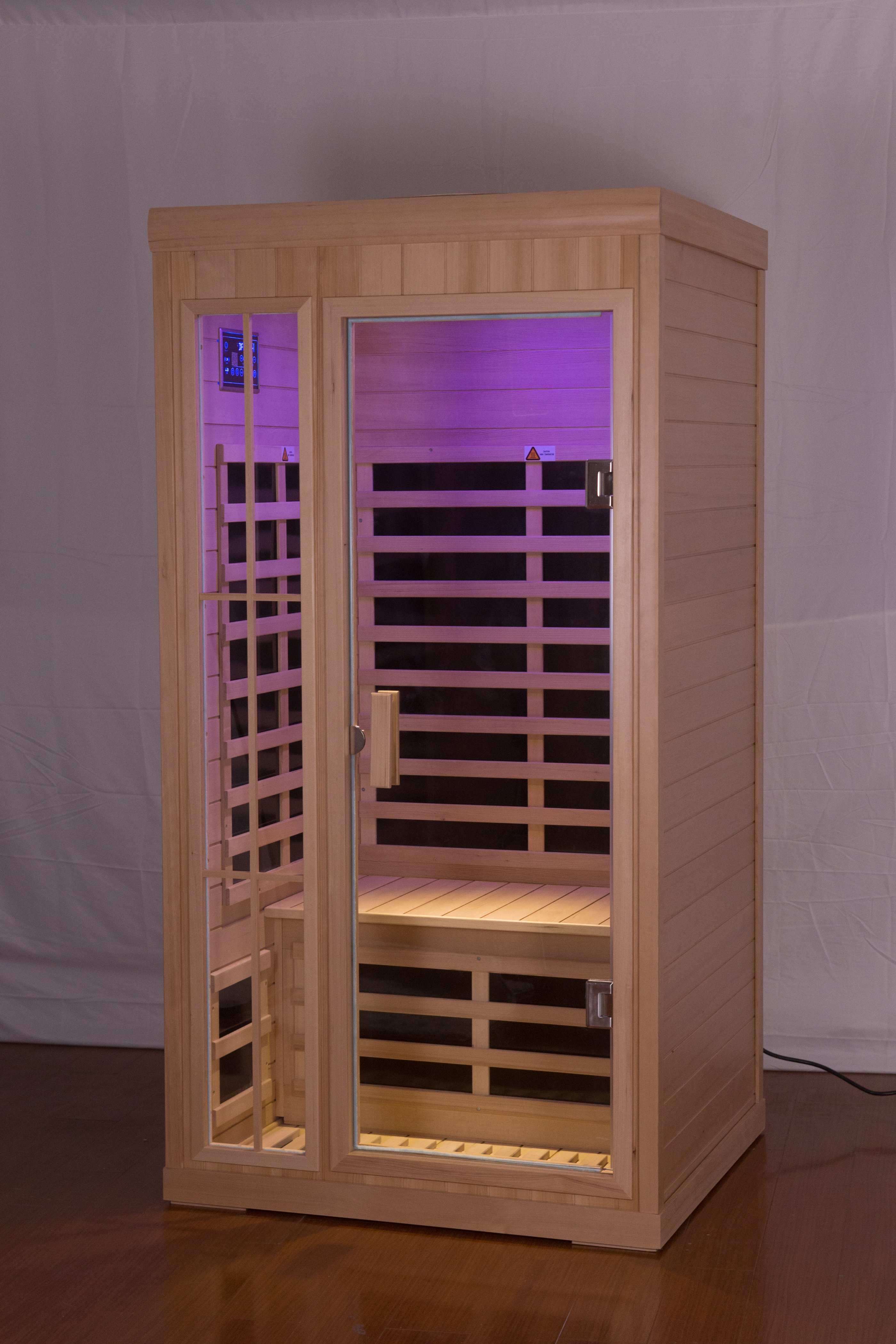 Home > Deluxe version Plus One person Far infrared Hemlock Sauna room with LED colour lights