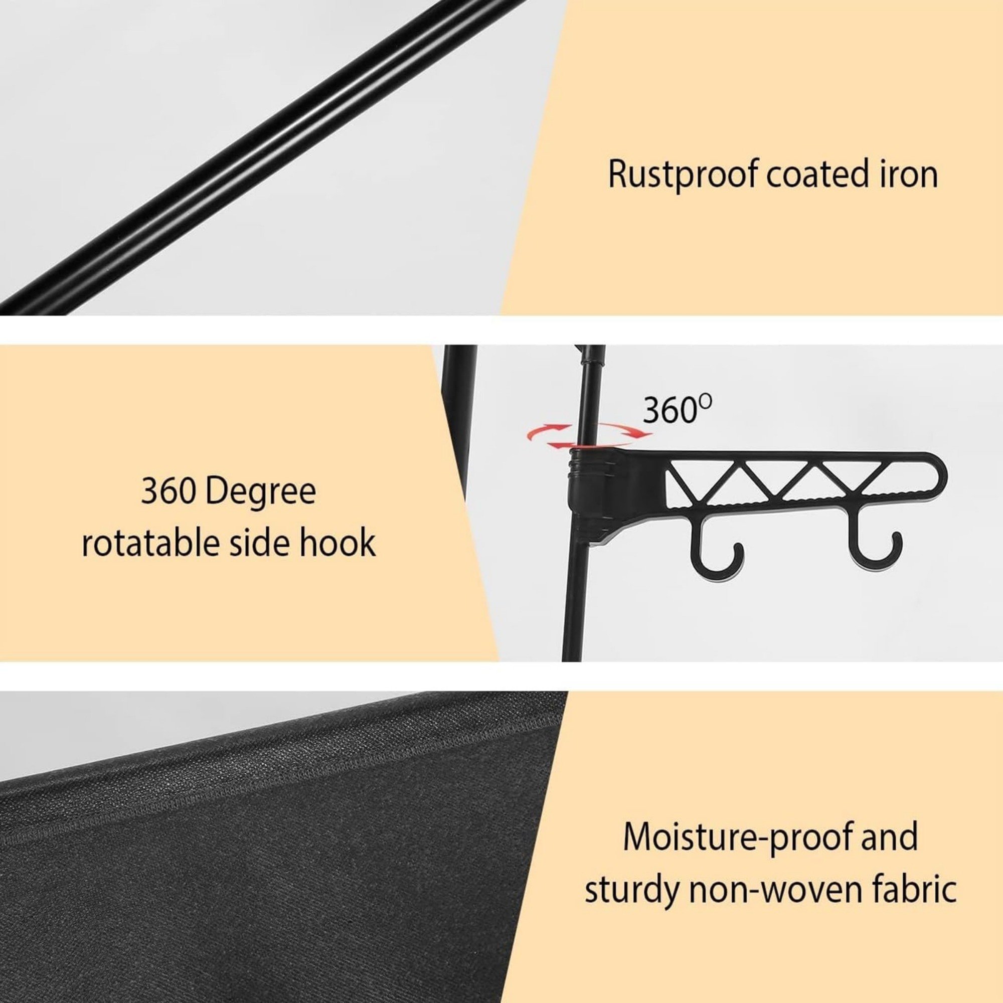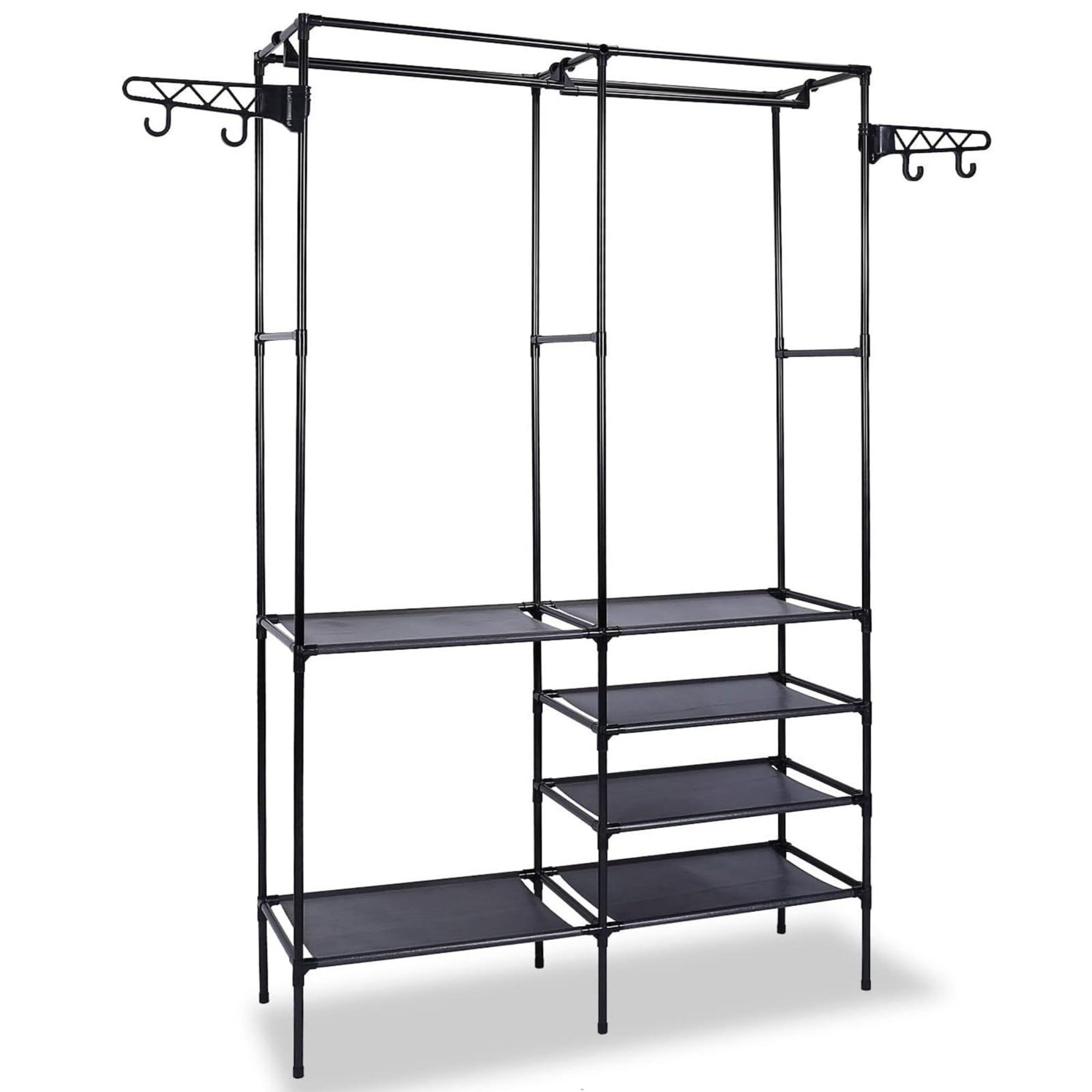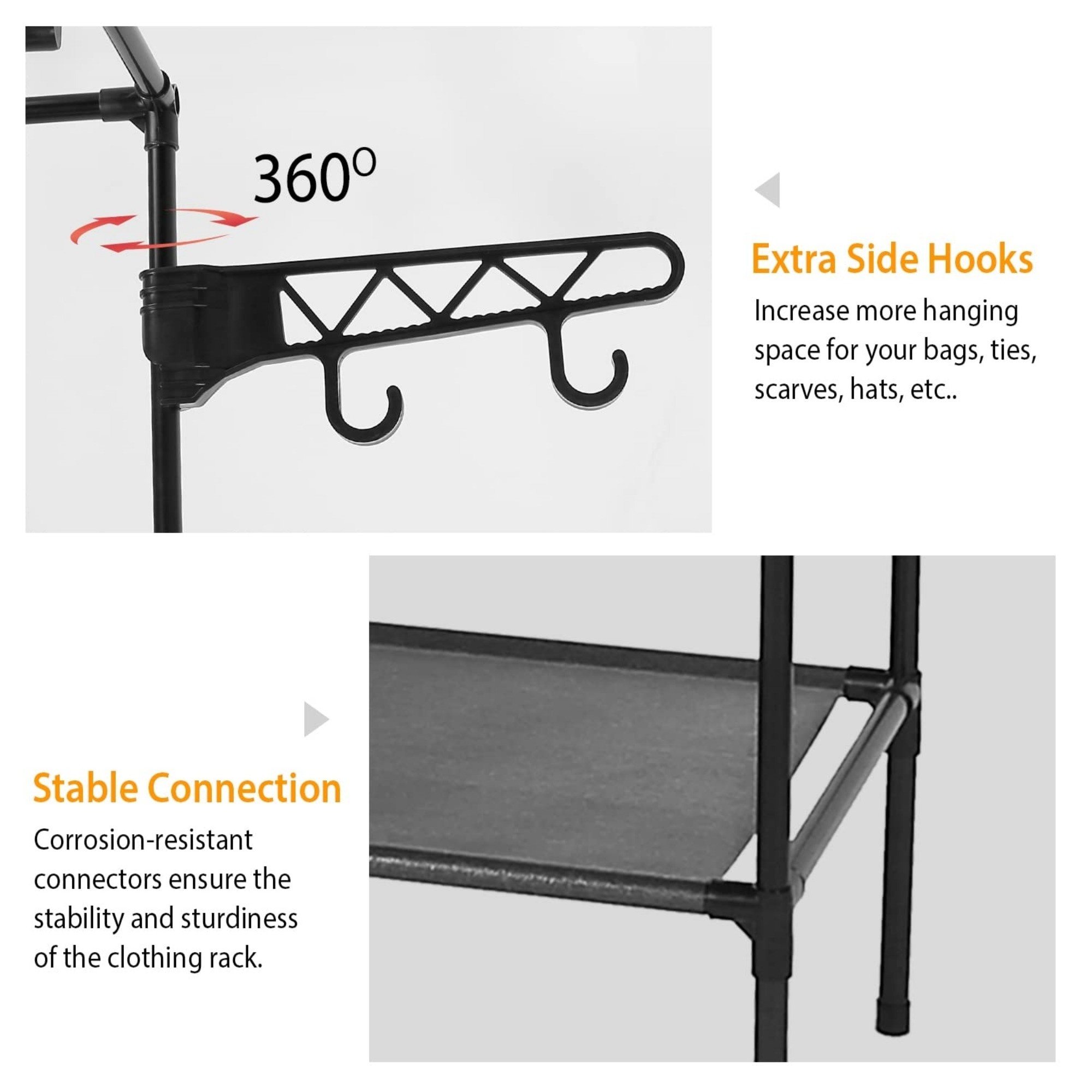 Multifunctional Design: This 66'' clothing rack offers 4 tiers of storage along with 4 hooks and 2 hanging rods, providing ample space for organizing various types of clothing and accessories.Portable and Space-Saving: The portable feature makes it easy to move around as needed, and its compact size is ideal for small spaces or rooms with limited closet space.Durable Construction: Made of coated metal, it is sturdy and built to withstand the weight of your clothes, ensuring long-term use.Stylish and Versatile: The sleek design of this closet rack blends seamlessly with any decor, and it can be used in bedrooms, dorm rooms, or even retail stores.Easy Assembly: With simple instructions and components, you can quickly assemble this freestanding closet wardrobe system without the need for professional assistance
