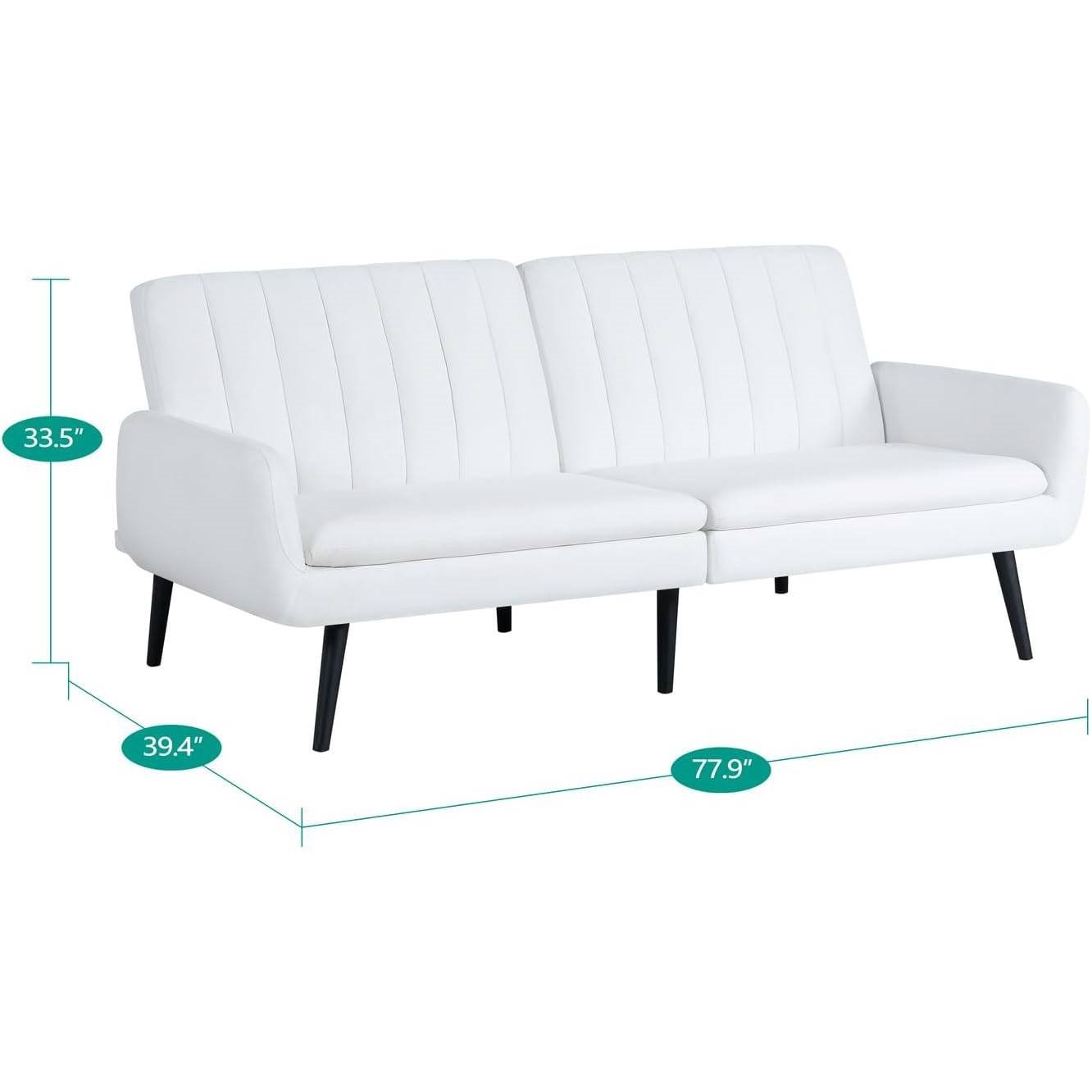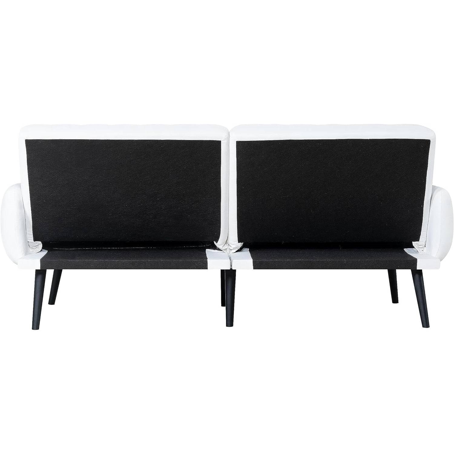 • Modern Mid-Century Futon Sleeper Sofa Bed in White Linen Fabric