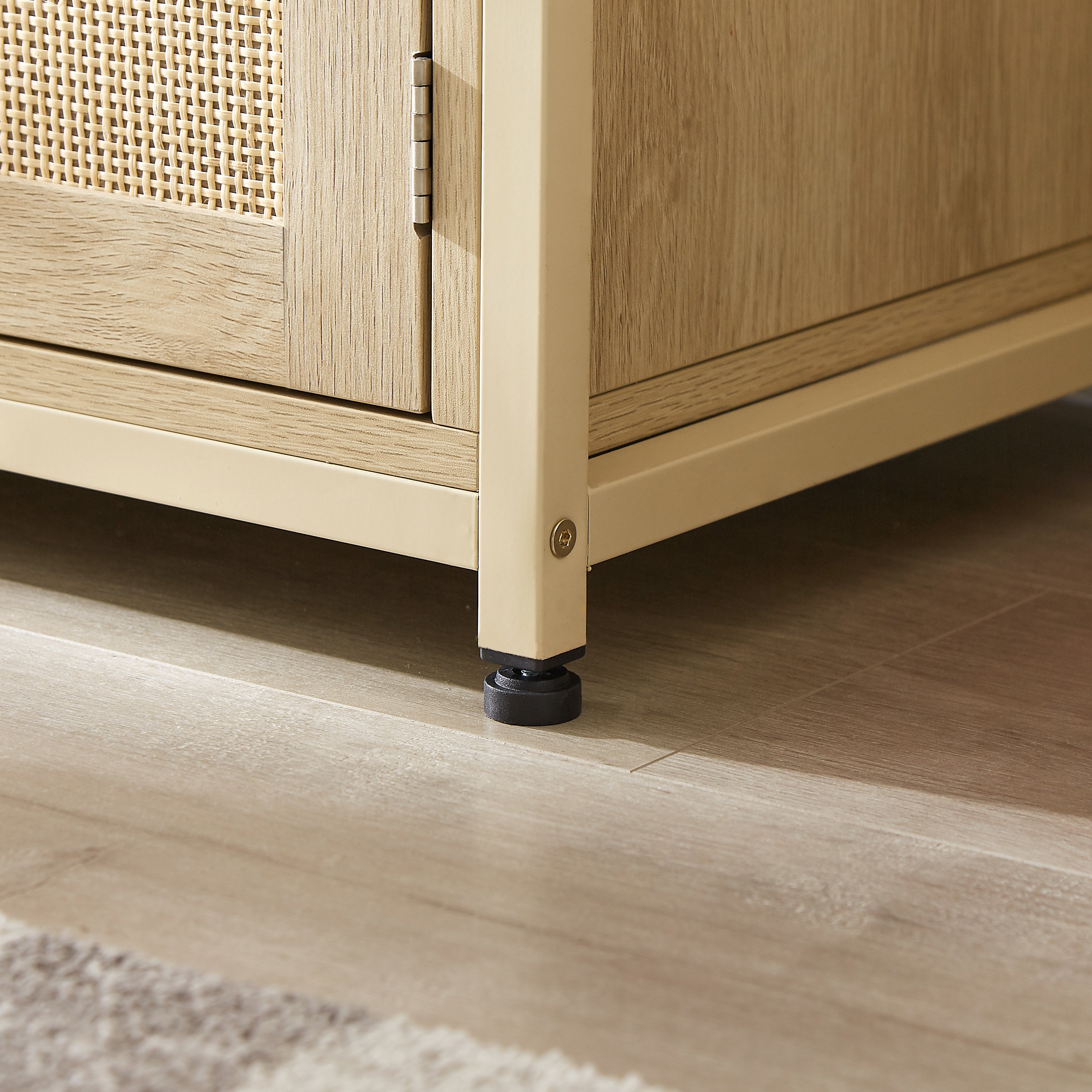1.Stylish bohemian furniture with cabinets made from natural rattan at the bottom, giving your room an earthy and cozy look.