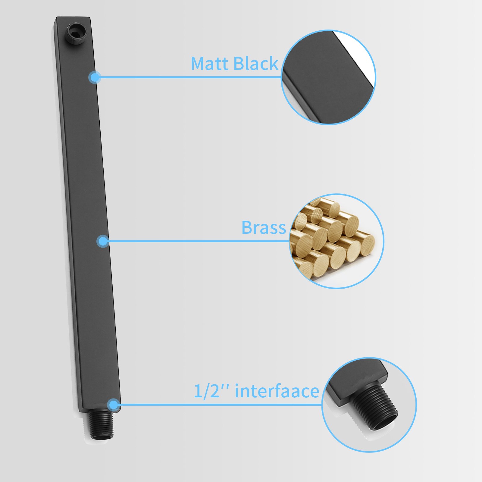 1. Item Weight: 12.57pounds 2. Package Dimensions: 18.9*14.96*9.94in 3. Is Discontinued By Manufacturer: ‎No 4. Size :‎12 Inch 5. Color: Black 6. Finish:Black 7. Material: ‎Stainless Steel, Brass 8. Shape:‎Rectangle 9. Installation: Method ‎Wall-Mounted 10.Item Package Quantity: ‎1 11.Included Components: ‎Shower arm, rain shower head, handheld shower head, shower valve faucet, shower bracket holder, shower hose 12.Batteries Included?: ‎No 13.Batteries Required? ‎No1. Includes: L Style Brass Handheld Shower Head,12 Inch304 Stainless Steel Rain Shower Head and Solid Brass Shower Mixer Valve 2. 16 Inch (40cm) Metal Shower Arm and 59 Inch Shower Hose, Concealed installation Brass Shower Bracket Holder 3. Nice plated finish offers a sleek look, ensuring corrosion resistance and durable 4. Air energy technology offer consistent powerful rain shower even under low water pressure.
