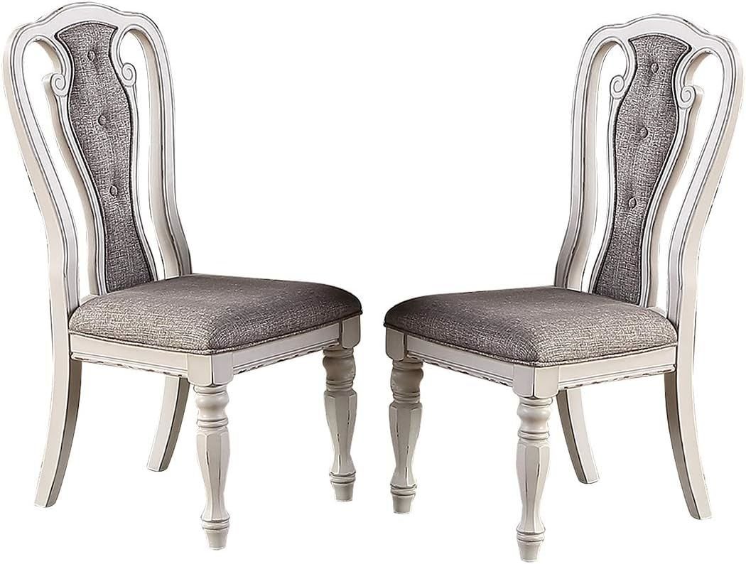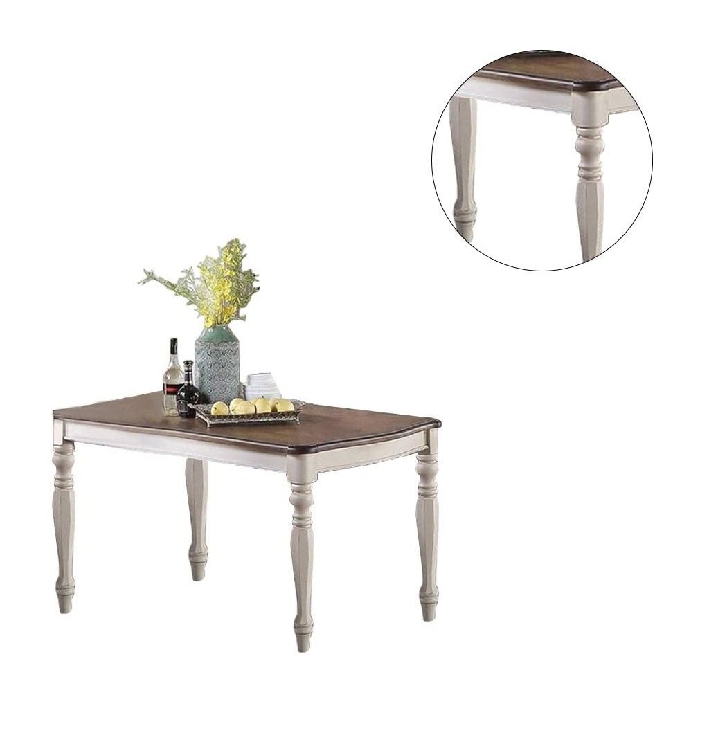 Transitional Style 7pc Dining Set Dining Table w Oak Top 6xSide Chairs Cushion Seat Antique White Kitchen Dining Room