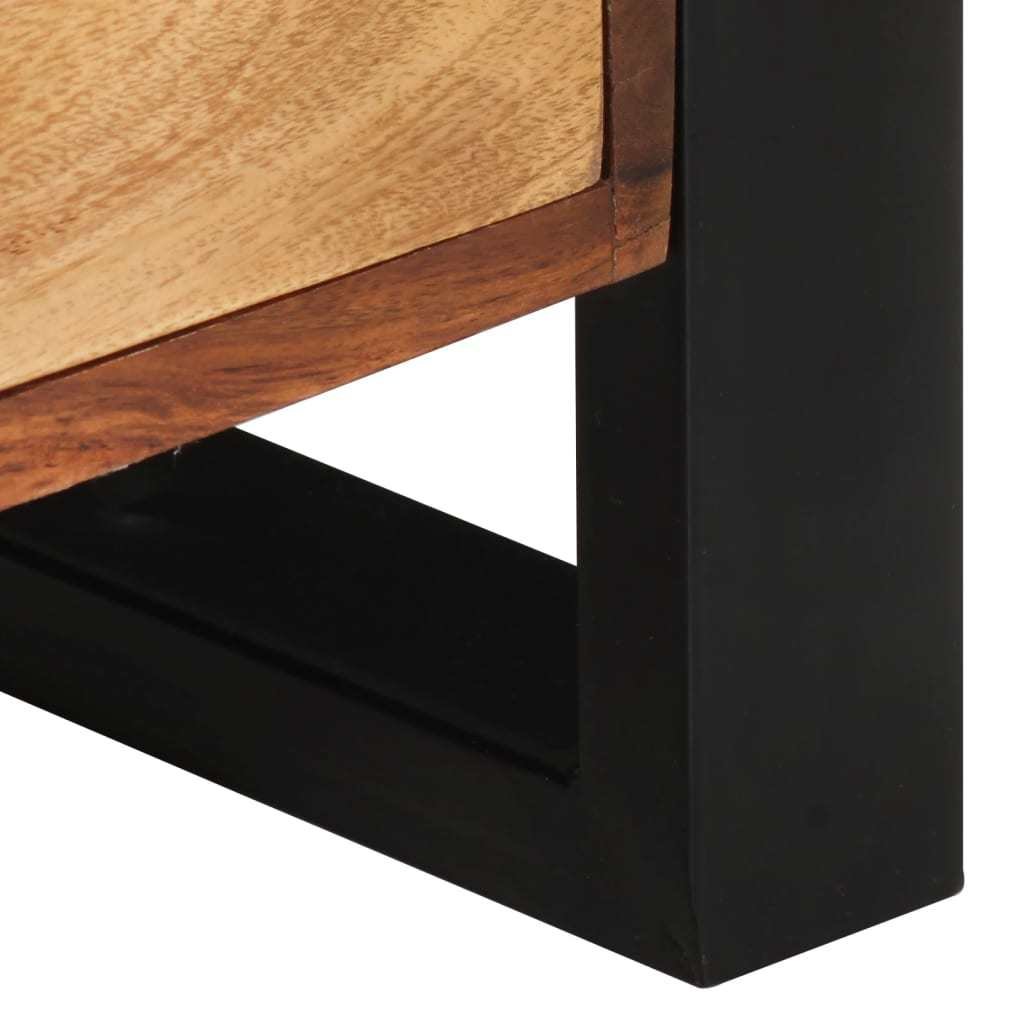 This vintage-style TV cabinet, made of solid Sheesham wood, will make a timeless addition to your home. Sheesham is a tropical hardwood that is famous for its rich grains and also known as rosewood or palisander. Every step of the process is carried out with the greatest care, be it polishing, painting or lacquering. Thanks to the strong steel frame, the TV stand is very steady and durable. It has two drawers for storing knick-knacks and a shelf for keeping multimedia appliances, gaming consoles and magazines. The TV stand can also be used as a side cabinet, hi-fi cabinet, etc.