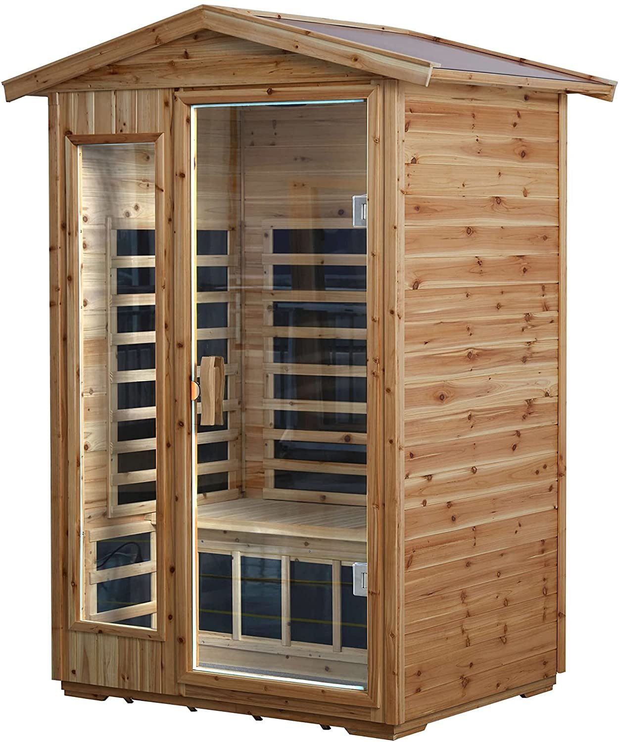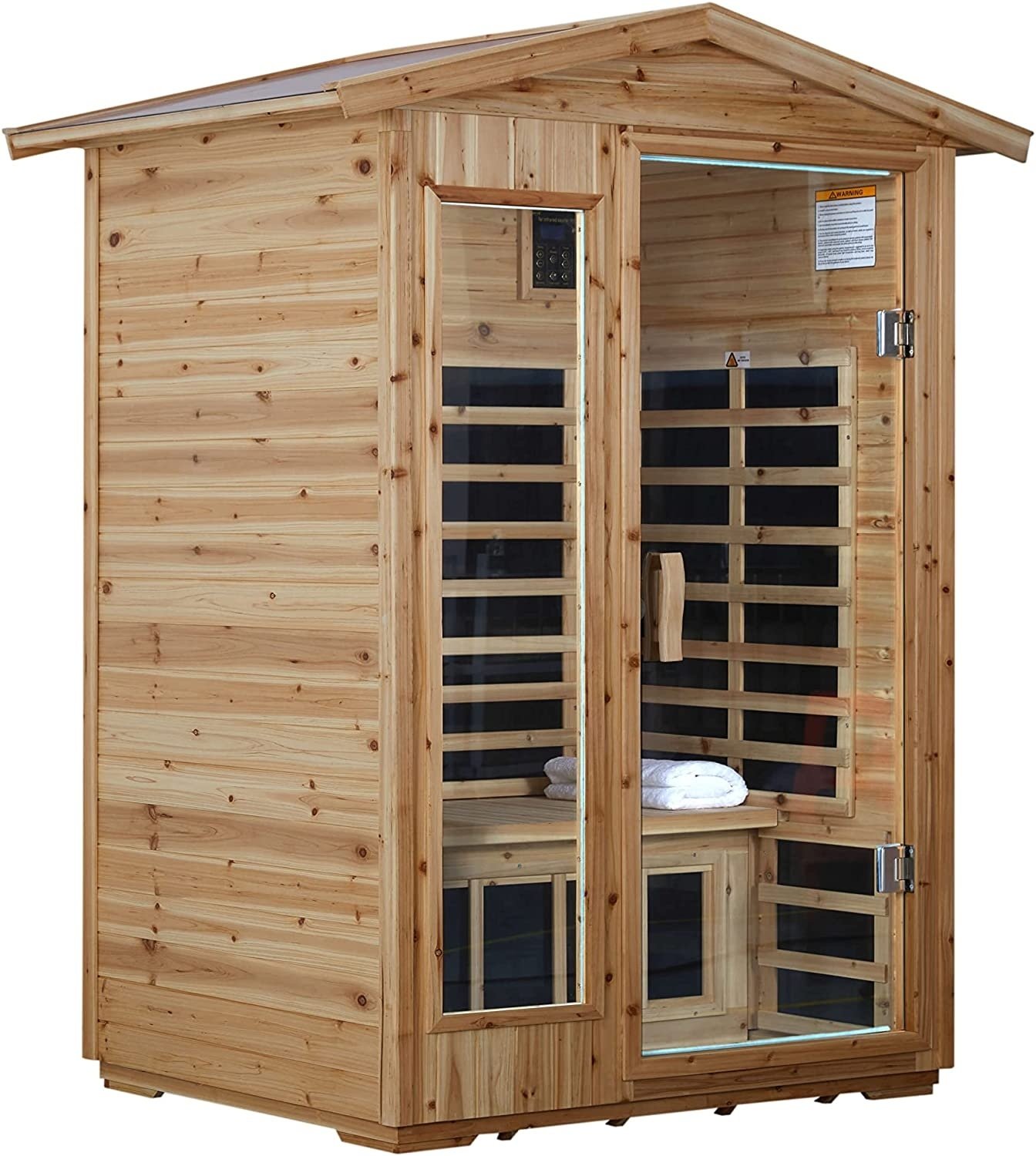 Two person Far infrared old fir outdoor sauna roomPower plug: US standard/European standard(15A)Power cable length: 3MRated power supply: 60Hz /120VNumber of heating panels :6PRated power: 1750WThe lowest temperature range: 25°CThe highest temperature range: 65°CFahrenheit and Celsius convert:NOTemperature protection: 110 degrees°CControl system: LCD display, touch controlAudio System: Bluetooth Audio,Bluetooth Equipment Name: BT SpeakerOther configurations:LED Reading light, Ambient background lightThe function of timing and temperature: YesVentilator scoop: YesWaterproof:Yes (Waterproof exterior for outdoor use)Main material: Old FirHeating material: Far infrared heating panelsPackaging method: foam, PP corner guard panel, compartment cardboard, carton and other packagingSeat load: 300kgApplicable height: 150-190cm
